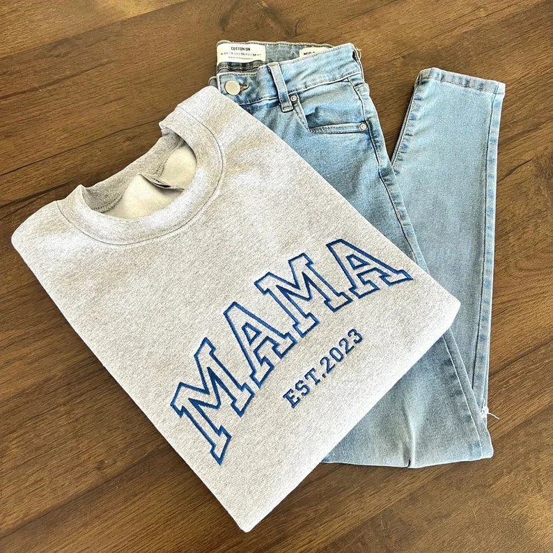Custom Mama Sweatshirt with Children Name on Sleeve,Custom Neck and Sleeve Design Sweatshirt, Mothers Day, Gift for Mom
