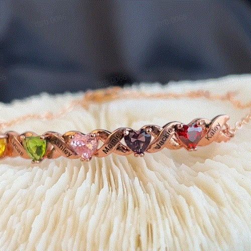 Design Inspiration:This Bracelet-Simply choose up to 7 crystal birthstones and provide up to 7 names of family members to grace a stunning garden of love you can wear with pride. Heart and flower birthstone design express your love for her, you can custom names and choose birthstones of the important person,it is unique and meaningful.
