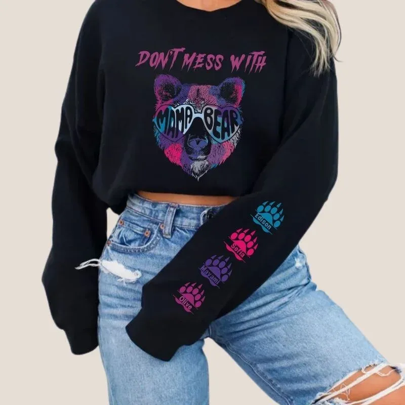 🔥 "Don't Mess With Mama Bear" Custom Sweatshirt 👩👧👦 — Where Mom’s Attitude Meets Personalized Pride —