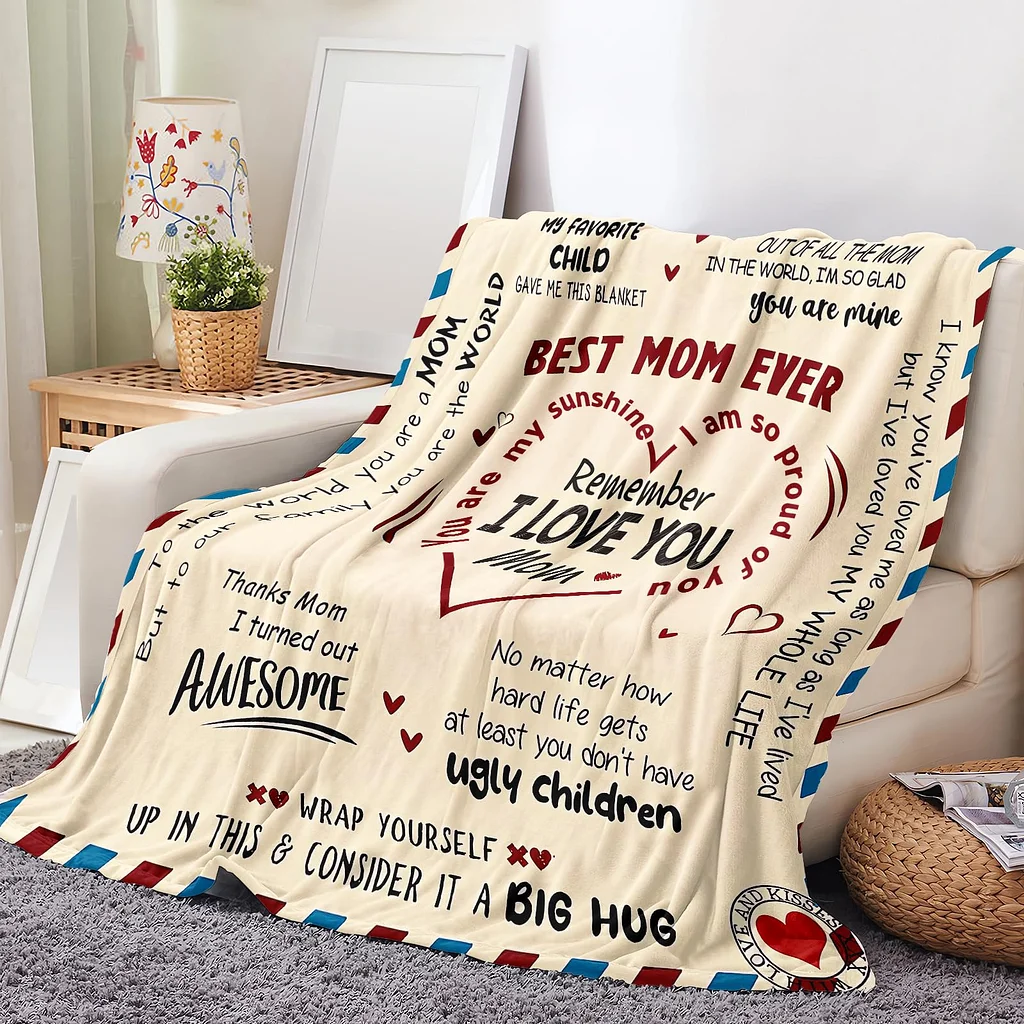 - 【Super Soft 100% Flannel Blanket】Mothers Day gifts plush blanket applied a high-grade dye process,"BEST MOM EVER" and other inspirational quotes on the surface and made of premium 300 gsm 100% flannel, warm, soft, lightweight, anti-wrinkle, and non-fade, easy to care, machine washable. Our blanket can be used every day, as unique gifts for her. Blanket gift will be a daily reminder that how much she is loved, your lover