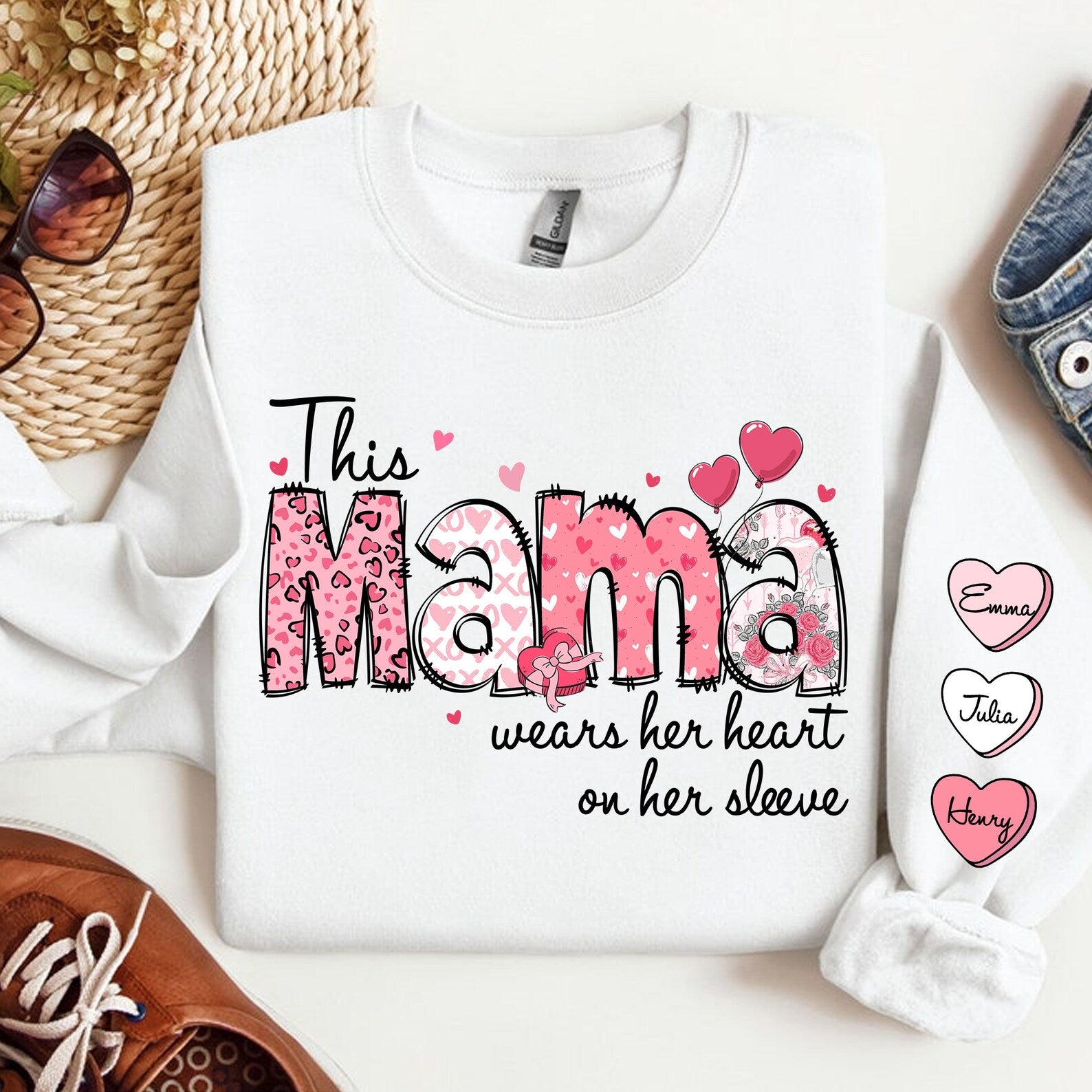 Celebrate the love and warmth of motherhood with our “This Mama Wears Her Heart on Her Sleeve” Custom Personalized Mama Sweatshirt. This delightful and cozy sweatshirt makes the perfect gift for any mom or grandma who proudly cherishes her family and wears her love openly.